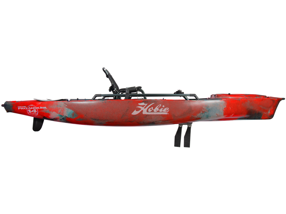 Všechno, co elitní rybáři hledají na rybářském kajaku – úplná kontrola, síla, stabilita, výkon, nenápadnost, pohodlí a bohatý výběr funkcí. Je to široká, skálopevně stojící platforma vyzdobená trakčními podložkami EVA snižujícími hluk. Prozkoumejte jízdou všechny místa kamkoli chcete, se zcela novými pohonem MirageDrive 360° Kick-Up, které se při nárazu automaticky zasunou. Extrémně pohodlné, nastavitelné sedadlo Vantage ST, dvojité řízení, zatahovací štít snímače Guardian a extra široký prostor paluby umožňuje dlouhé dny na vodě při rybaření. Připevněte držáky prutů a elektroniku na tyče Hobie H-Rail. TOP 100% rybářský kajak pro sportovní rybolov.
